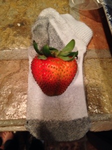 So here is a picture of one of my actual socks with a strawberry for reference (a banana was too big).